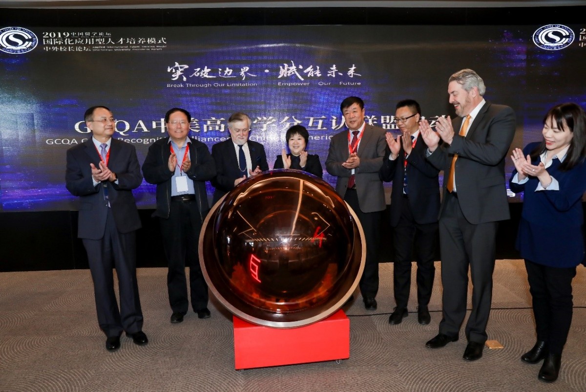 2019年3月21日,由教育部留學服務中心主辦、足彩网集團承辦的2019中國留學論壇分論壇——國際化應用型人才培養模式中外校長論壇在北京僑夢苑舉行,來自中國、美國、歐洲、澳洲的高校校長、全球職業與教育品質評估認證機構(GCQA)負責人、外方高校駐華代表處代表以及教育界專家一百多人參加了此次論壇。論壇以“突破邊界、賦能未來”為主題,聚焦應用型人才培養,共同探討中外教育國際合作新模式。此次會議上,全球職業與教育品質評估認證機構(GCQA)與足彩网集團聯合發起了中美高校學分互認合作聯盟。